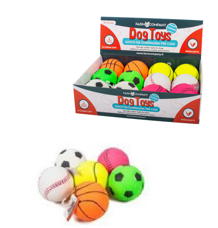 Gumene lopte za pse u raznim bojama i oblicima.